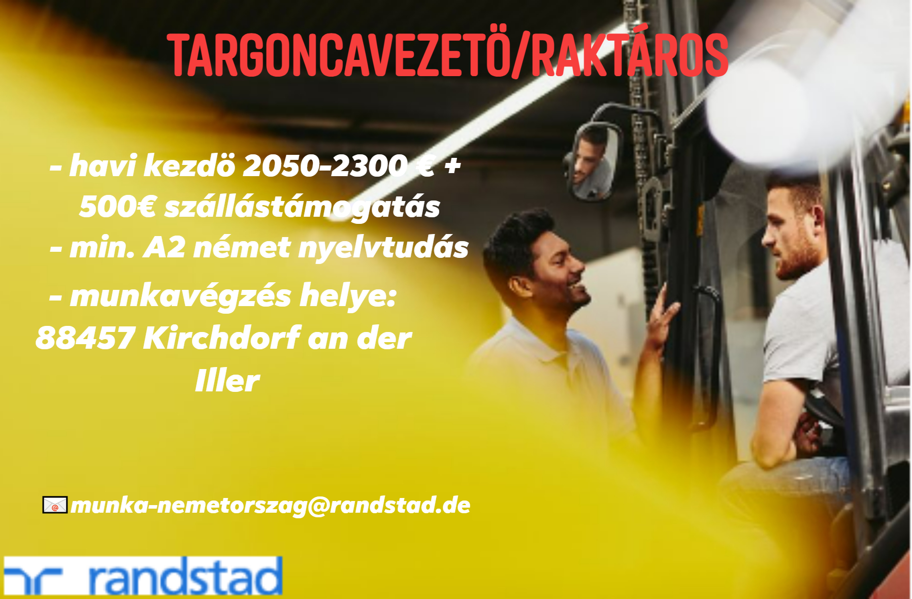 Amennyiben hirdetésünk felkeltette érdeklődését, kérjük, küldje fényképes, magyar és/vagy német nyelvű önéletrajzát az alábbi email címre: munka-nemetorszag@randstad.de