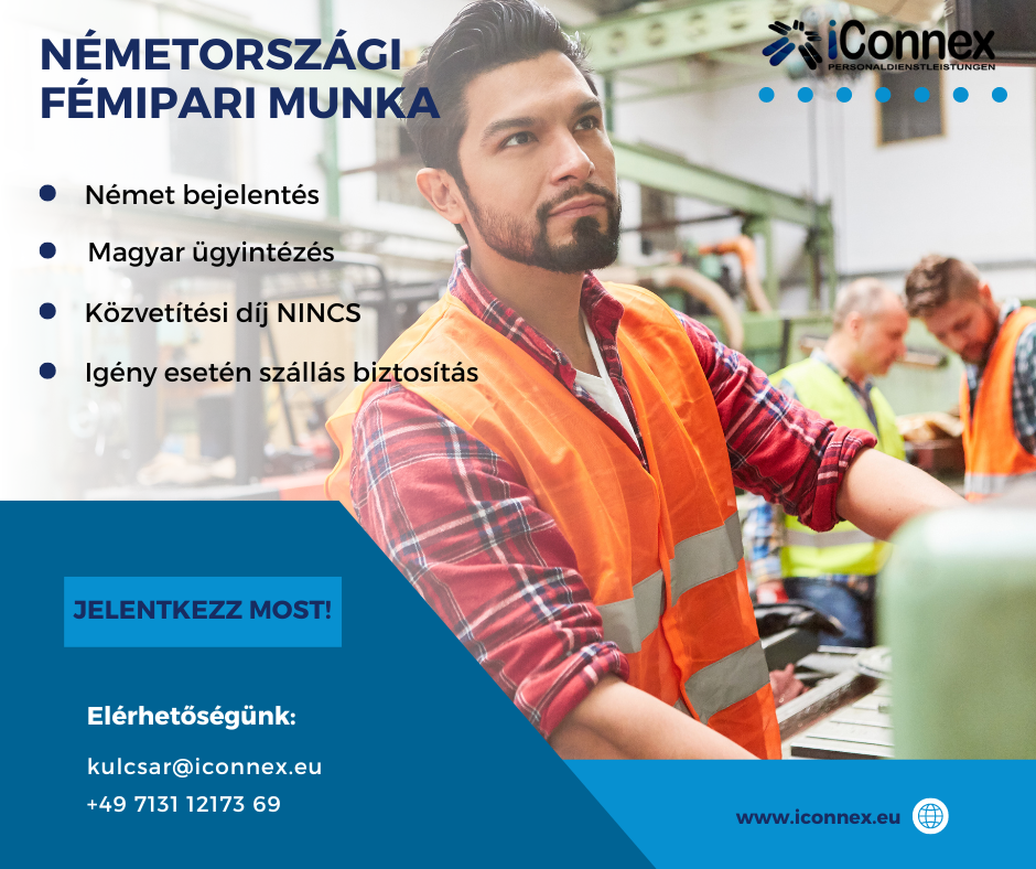 Az iConnex GmbH egy évek óta dinamikusan növekvő német cég, amely már több száz elégedett munkavállalóval rendelkezik. A vállalat Németország Baden-Württembergi tartományában van jelen és sokéves tapasztalattal rendelkezik a kelet Európai térségből érkezett munkavállalók foglalkoztatásában. Cégünket kimagaslóan jó minőség és megbízhatóság jellemzi, munkavállalóinkra kiemelt figyelmet fordítunk.
