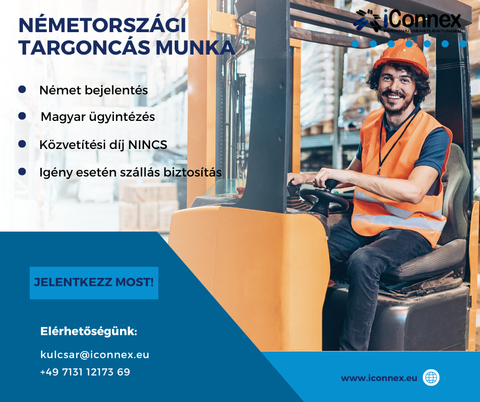 Német szerződés és bejelentés, közvetítési díj nélkül. Igény esetén szálláslehetőséggel!