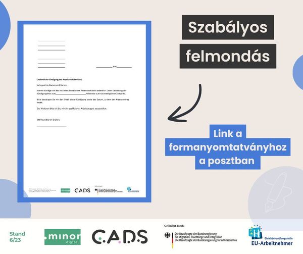 Magyar és német nyelvű formanyomtatványok munkaviszony felmondásához.