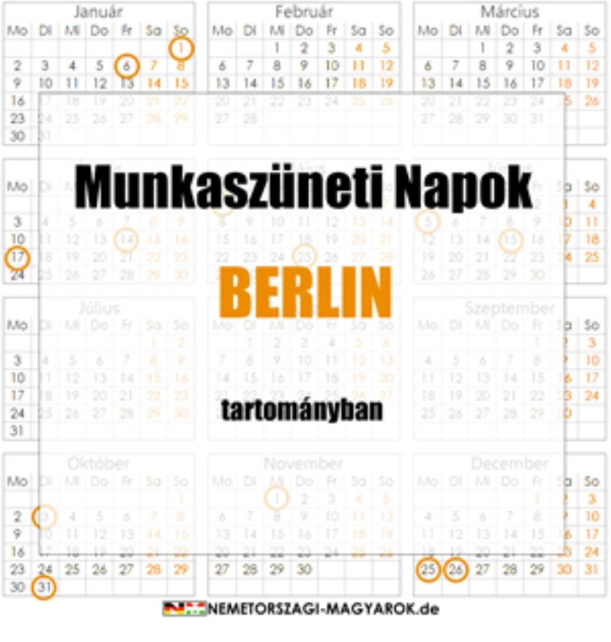 Munkaszüneti napok, ünnepnapok Berlinben 2024