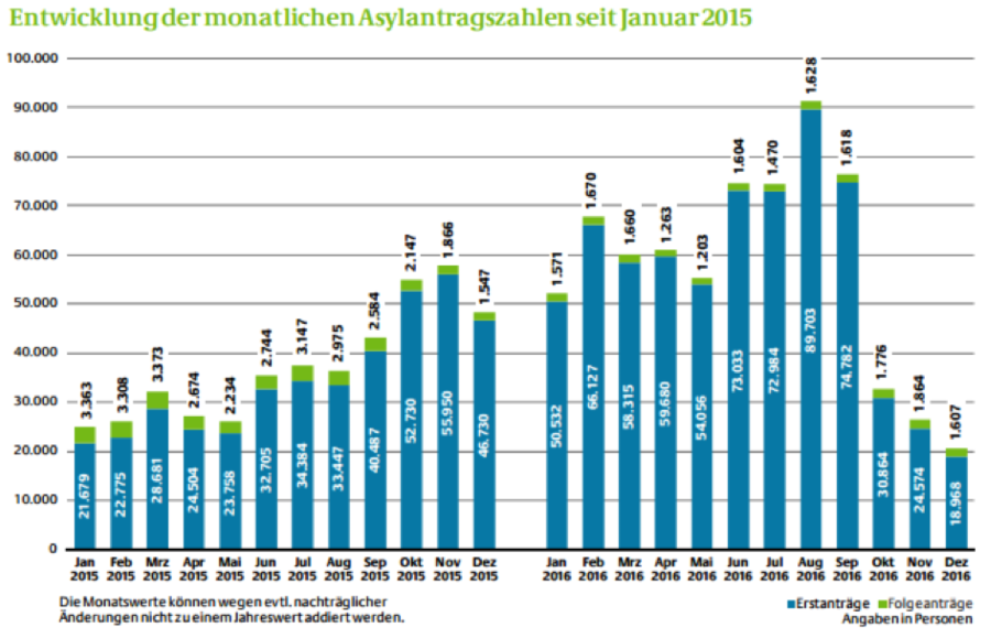 Hogy alakultak a menekültjogi kérelmek száma Németországban 2015 és 2016 években