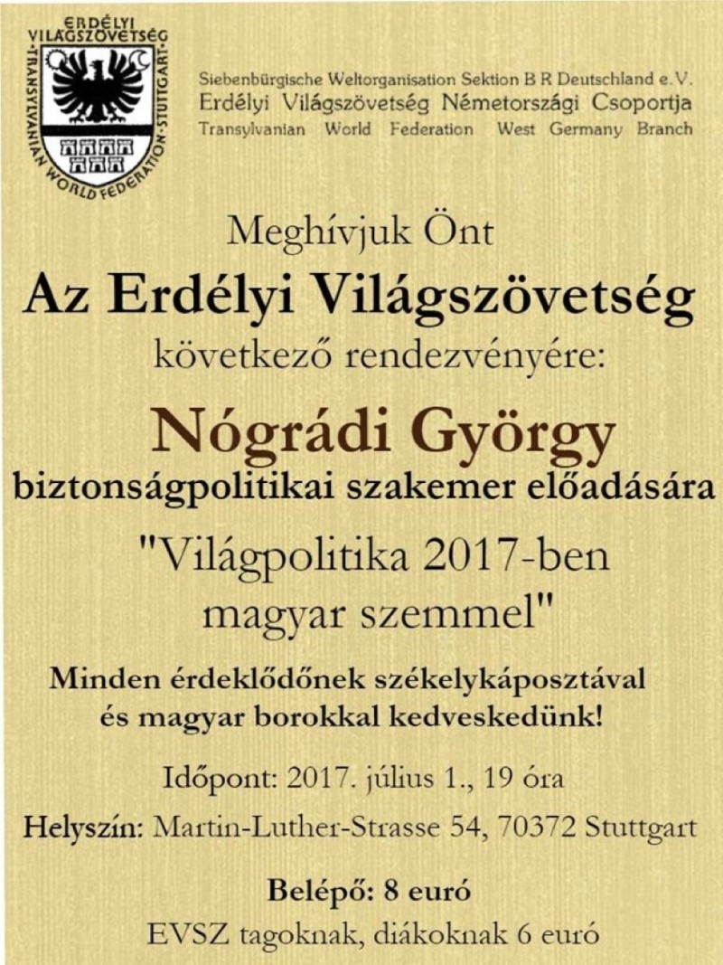 Nógrádi György biztonságpolitikai szakember előadása Stuttgartban, 2017 júl. 1