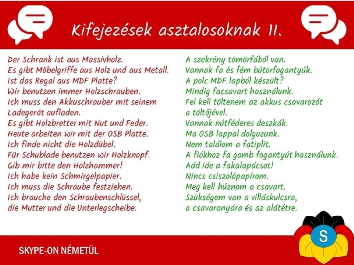 német nyelvleckék, kifejezések, asztalosoknak