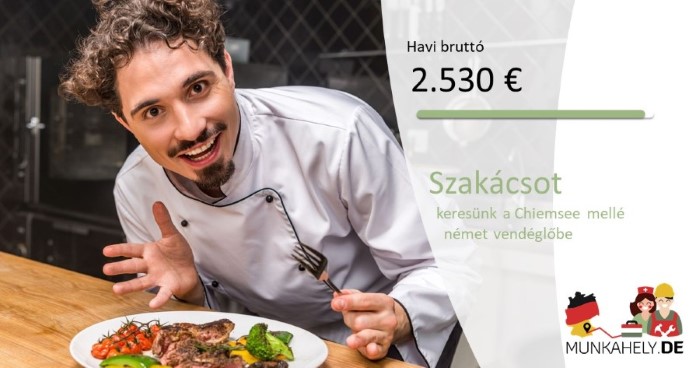 Mi, a Munkahely.DE egy müncheni munkahely és lakásközvetítő cég vagyunk, és közepes szintű nyelvtudással hidegkonyhai szakácsot/szakácsnőt keresünk egy 4 csillagos német hotel éttermébe, München és Salzburg között a Chiemsee környékén. Tel.: +498921547388