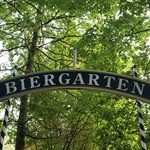 Páros német munka bajor sörkertben, a nyári szezonban Nürnberg közelében