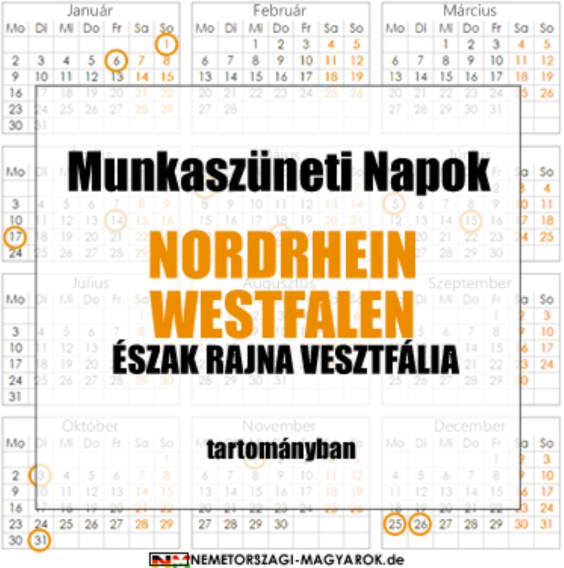 ünnepnapok, munkaszüneti napok, szabadnapok, nrw, nordrhein westfalen