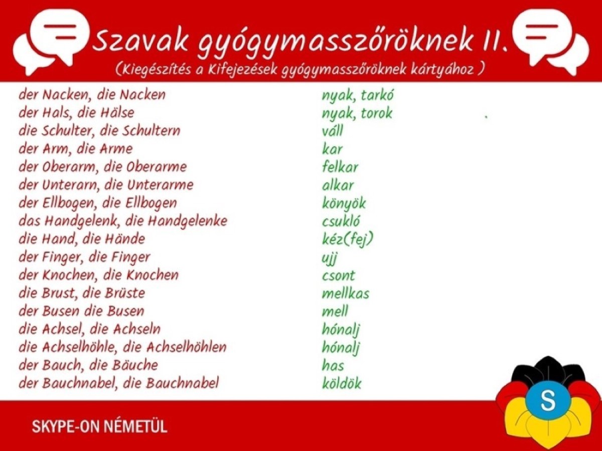 Német nyelvleckék- szavak gyógymasszőröknek 2. rész